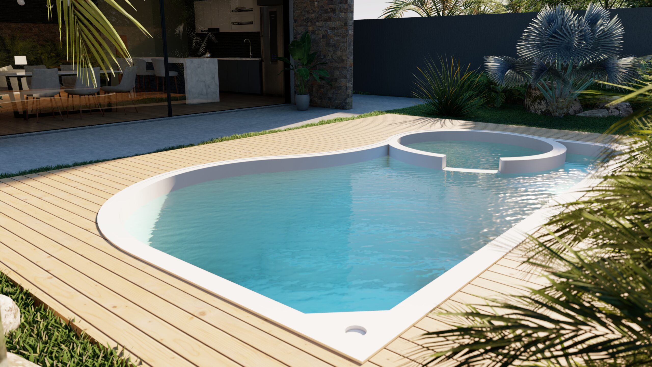 Nossas Piscinas são a melhor opção para sua área de lazer por sua durabilidade e resistência, além de oferecer um visual elegante e sofisticado para qualquer ambiente. Trabalhamos com materiais de alta qualidade e contamos com uma equipe altamente experiente e qualificada para garantir que sua piscina fique perfeita.
